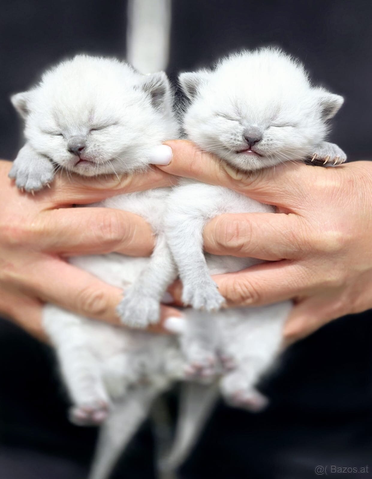 Wir haben 2 weiße Colourpoint-(M) und 1 graues Kätzchen (W), aktuell 5 Wochen alt.